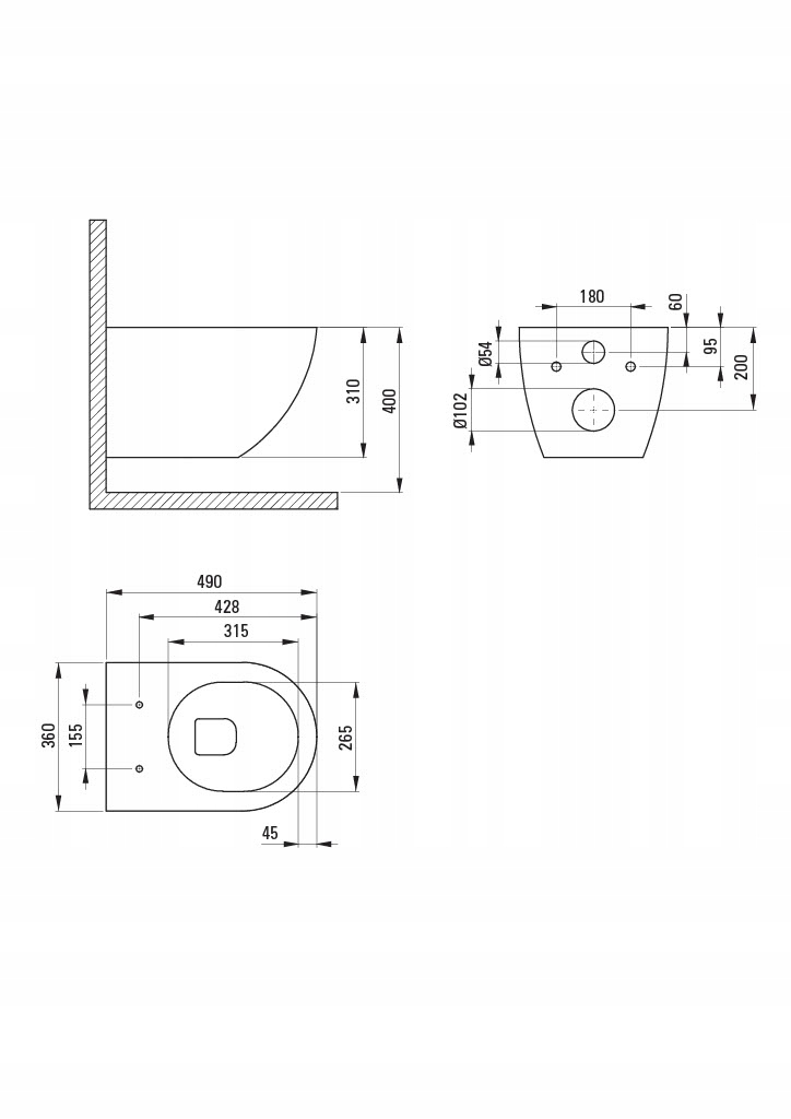 • Do zamontowania wiszącej miski WC o rozstawie śrub mocujących 180 mm lub  230 mm