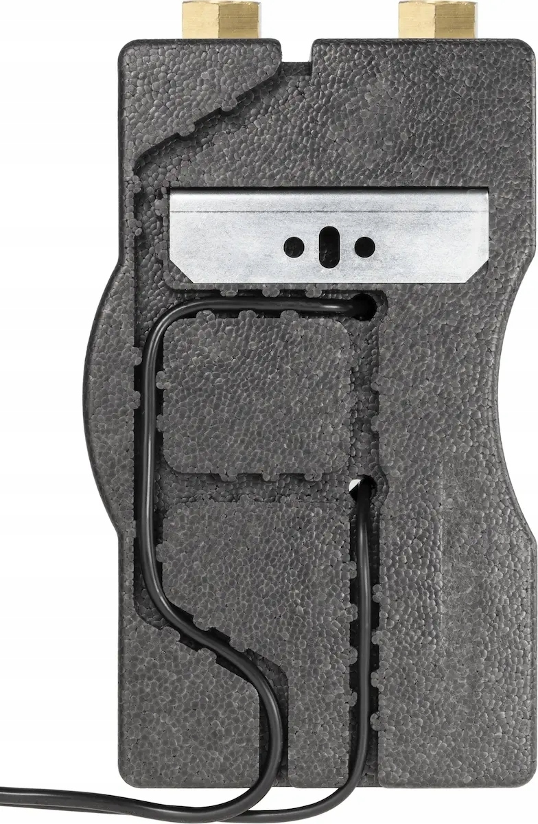 Wyposażona w niezbędne komponenty: termometry, zawór zwrotny, zawory odcinające na zasilaniu i powrocie, zawór odcinający przed pompą oraz izolację termiczną.