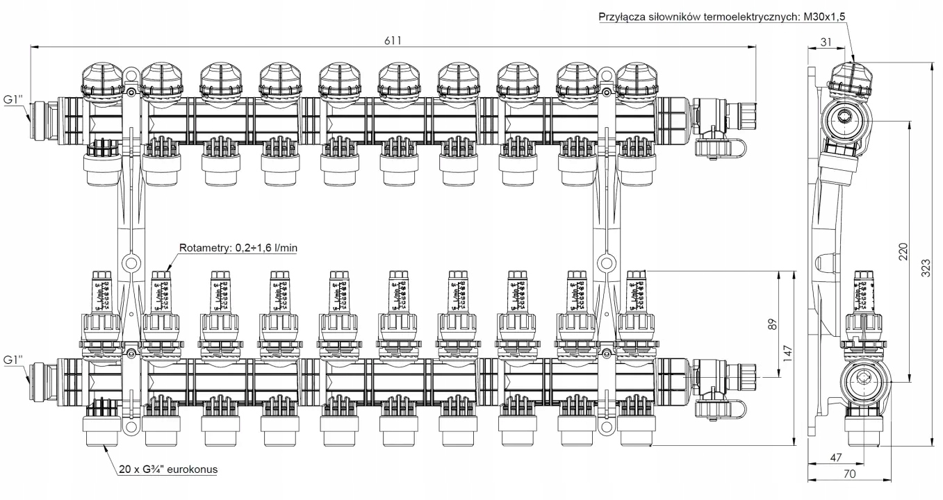 Rozprowadza ciepło / chłód ze źródła na poszczególne pętle instalacji płaszczyznowej.