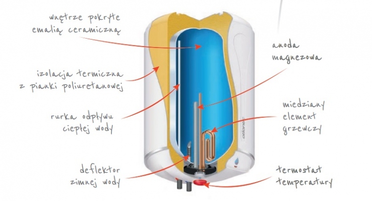 - zewnętrzne pokrętło regulacji zakresu temperatury wody 15-65°C,