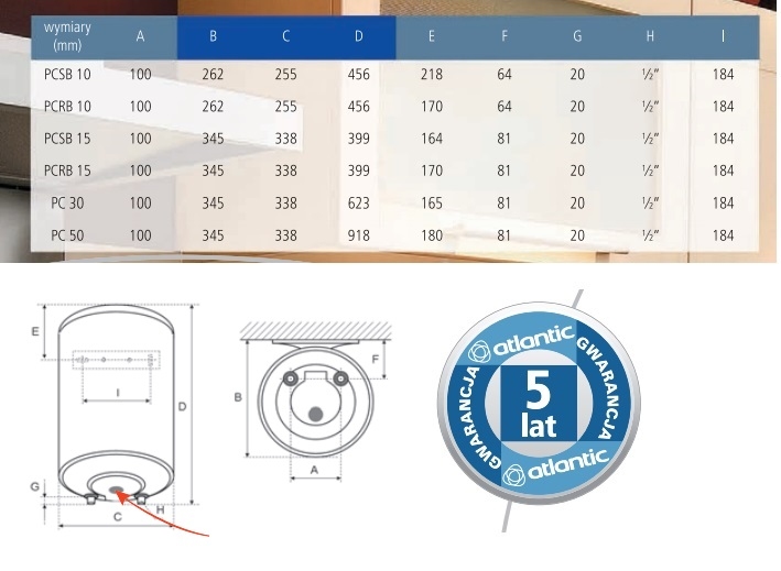 ATLANTIC OPRO Small Pojemnościowy ogrzewacz wod 10l nadumywalkowy [PC10RB]