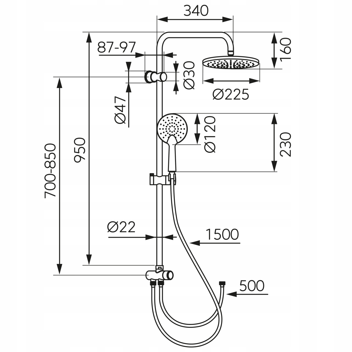 • W zestawie: Drążek, uchwyt natrysku, rączka natryskowa, deszczownia, wąż natryskowy