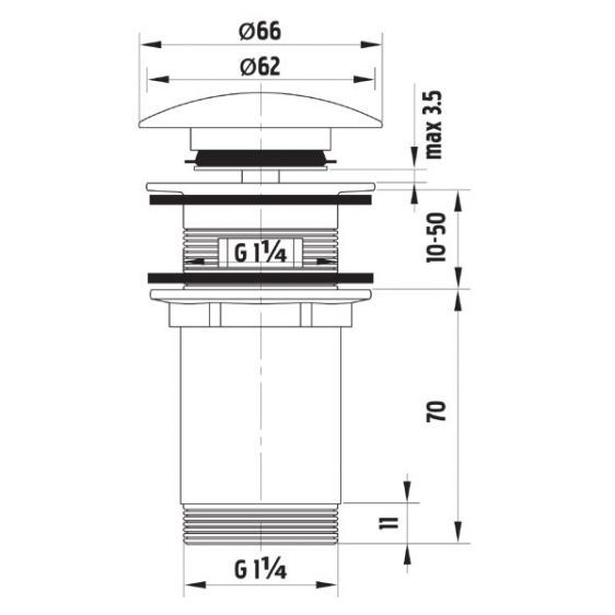 Zawór spustowy Rotondo zamykany G 1 1/4”, do umywalek z przelewem.