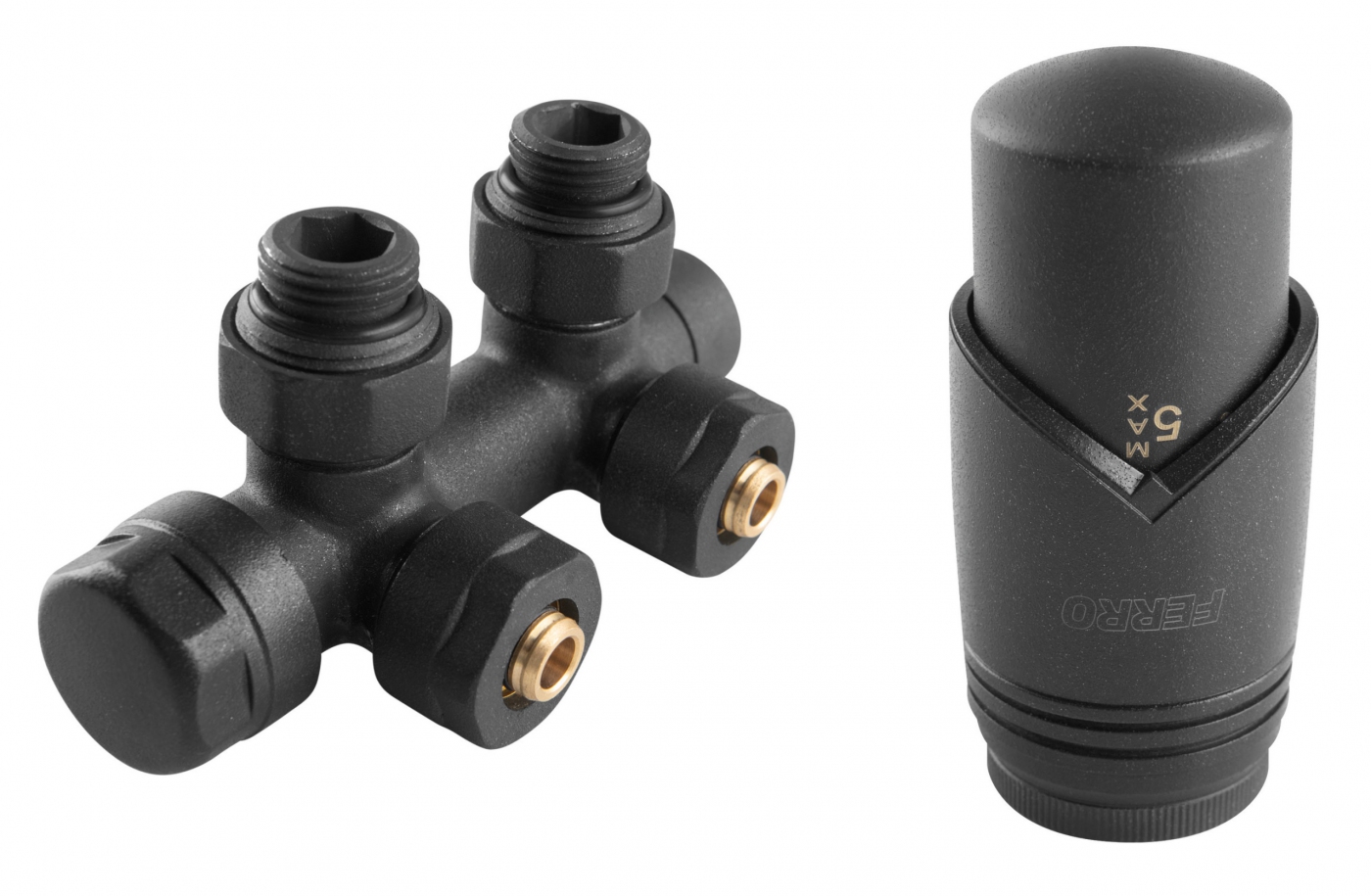 Zestaw termostatyczny zespolony kątowy, antracyt