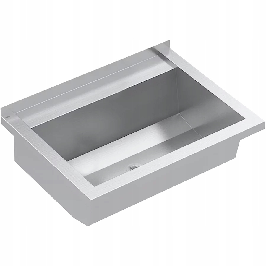 PLANOX umywalka rynnowa spawana bezspoinowo, do montażu ściennego, stal chromowo-niklowa, powierzchnia szlifowana matowa, grubość materiału: umywalki 0,8 mm / ścianek bocznych 1,2 mm. Ścianki boczne ze zintegrowanymi wspornikami ściennymi, obniżona półka armaturowa 80 mm, bez otworu na armaturę i bez przelewu, listwa tylna 40 mm, odpływ na środku, zawór sitkowy G 1 1/2B, w zestawie materiały montażowe. Od długości 1800 mm w komplecie dodatkowy wspornik. Długości niestandardowe dostępne na zamówienie.