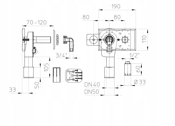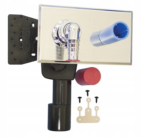 Syfon podtynkowy do pralki lub zmywarki DN40/50 z dopływem wody,kolankiem przyłaczeniowym do węża 3/4' HL19.C, płytką montażową, korkiem budowlanym HL42.B i płytką dekoracyjną ze stali szlachetnej 180x100mm