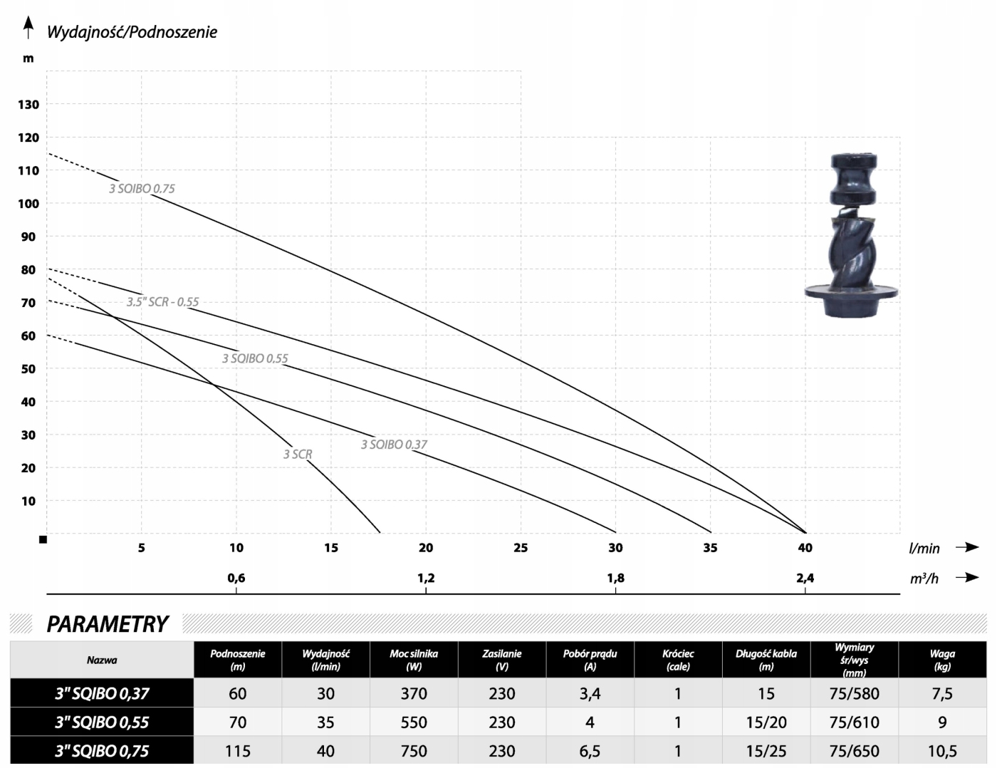 Pompa głębinowa SQIBO 0,75 kW 230V IBO z 25 m kablem