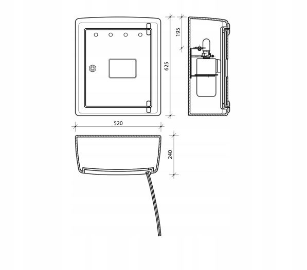 Nie posiada tylnej ścianki, co umożliwia jej łatwe zamocowanie na ścianie budynku lub murze.