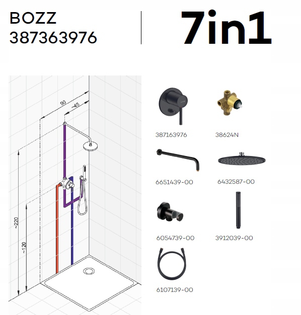 Kludi BOZZ zestaw podtynkowy prysznicowy 7w1 CZARNY MAT