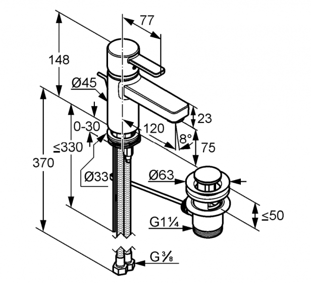 • elastyczne wężyki ciśnieniowe G 3/8
