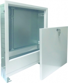 Szafka podtynkowa do montażu rozdzielaczy obwodów grzewczych. Wykonana w całości z blachy stalowej ocynkowanej o grubości 0,8 mm, dodatkowo front szafki malowany proszkowo. Głębokość montażowa szafki i jej wysokość regulowane, a front zdejmowany w całości, co umożliwia wygodny montaż rozdzielacza. Drzwiczki zamykane na zamek cylindryczny.