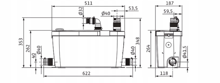 Gotowe do podłączenia, cichobieżne, automatyczne urządzenie do przetłaczania wody zanieczyszczonej zgodnie z EN 12050-2, do montażu nadziemnego, wyposażone we wszystkie wymagane urządzenia przełączające i sterujące.Elementy instalacji:Niezawodna pompa zatapialna.Zintegrowany zawór zwrotny.Filtr z węglem aktywnymZabezpieczenie przed przelewemElastyczne króćce połączenioweMax. trzy opcje podłączenia do osuszania umywalek, wanien, natrysków, pralek, zmywarek lub zlewozmywaków.Przy podłączaniu przestrzegać lokalnych norm i wytycznych (np. w Niemczech – DIN 1986).Opcjonalnie dostępny jest alarm niezależny od zasilania z sieci.