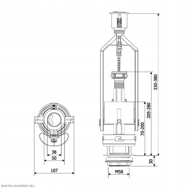 Wszystkie zawory spustowe firmy KK-POL są uniwersalne i dzięki temu są kompatybilne z większością typów spłuczek