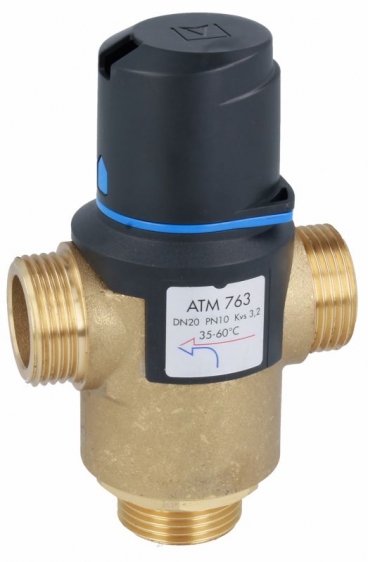 Zawory termostatyczne mieszajace ATM powinny być stosowane wszędzie tam, gdzie niezbędna jest ochrona przed poparzeniem oraz wskazana jest szybka reakcja na zmiany temperatury i ciśnienia wody. Zawory ATM umożliwiają bezpieczne przegrzewanie wody w zasobnikach c.w.u. w celu ochrony przed bakteriami Legionelli, bez narażania użytkowników na poparzenie. Funkcja "bez oparzeń" powoduje zablokowanie dopływu wody ciepłej w wypadku awarii dopływu wody zimnej. W instalacjach grzewczych, np. ogrzewania podłogowego zawory ATM mogą zastępować rozbudowane i kosztowne układy regulacji. Pod plastikową pokrywką, chroniącą przed przypadkową zmianą nastawy, znajduje się pokrętło do ustawienia temperatury wody zmieszanej. Zawory termostatyczne ATM podczas pracy nie wymagają czynności konserwacyjnych i mogą być montowane w dowolnej pozycji. Przeznaczone są do pracy z czystą wodą lub wodą zawierającą maksymalnie 50% glikolu. Wykonane są z mosiądzu.