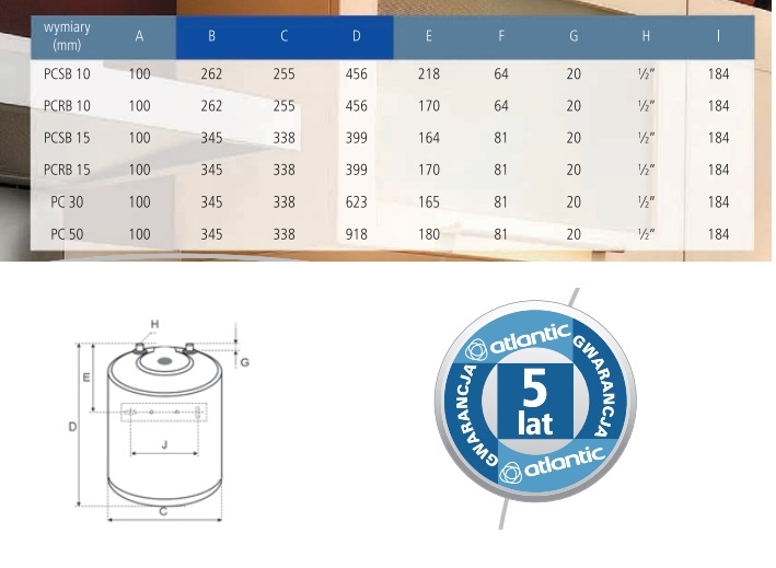 ATLANTIC OPRO Small Pojemnościowy ogrzewacz wody 10l podumywalkowy [PC10SB]