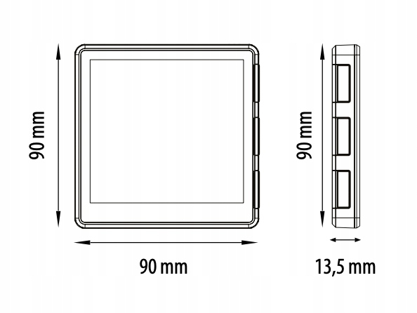 • Wymiary [mm]: 90 x 90 x 34 (13mm po montażu w puszce Ø 60mm)