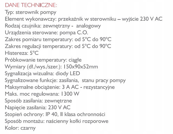 Elektroniczny sterownik pompy centralnego ogrzewania przeznaczony do automatycznego załączania i wyłączania pompy obiegowej zgodnie z zadaną temperaturą.