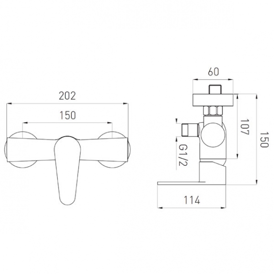• przyłącze mimośrodowe G½ rozstaw 150 ± 20 mm