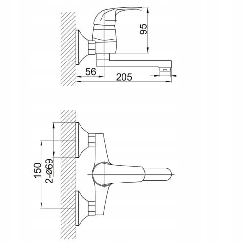 - Obrotowa wylewka L= 150 mm