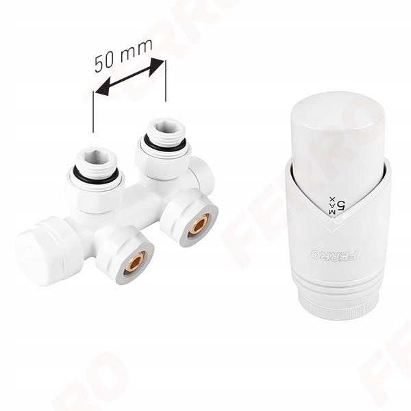 FERRO Zestaw termostatyczny zespolony kątowy biały