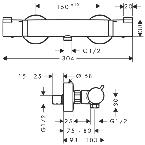 HANSGROHE Ecostat Ecostat Comfort bateria termostatowa prysznicowa DN15, montaż natynkowy