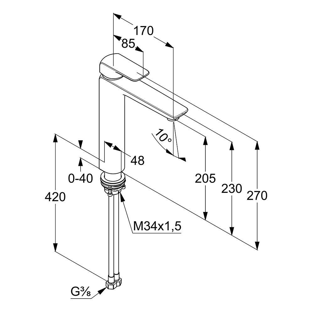 • wysokość wylewki 205 mm