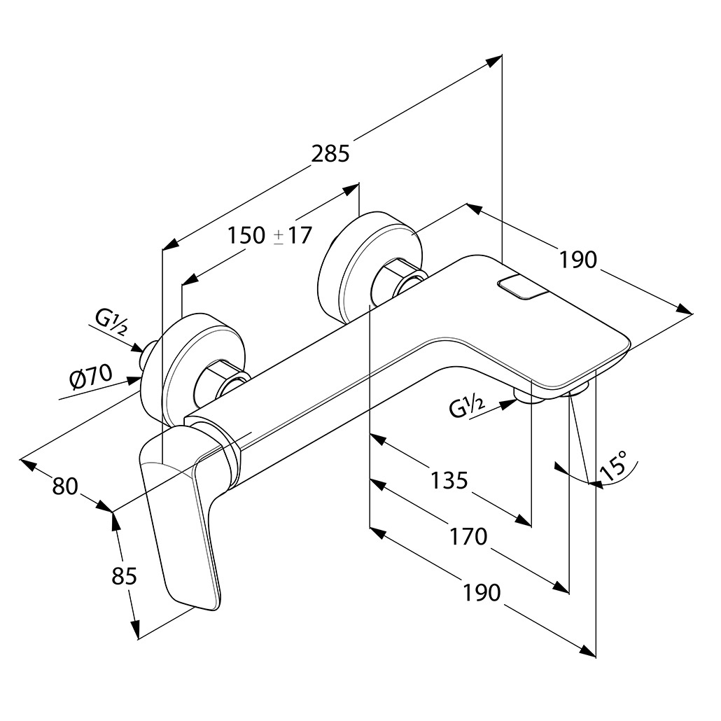 • jednouchwytowa bateria wannowo-natryskowa DN 15
