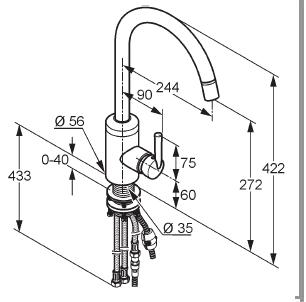 KLUDI STEEL 101 bateria kuchenna z wyciąganą wylewką STAL SZLACHETNA