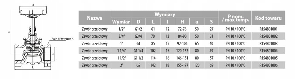 RED VIKING zawór grzybkowy przelotowy ocynk 3/4"