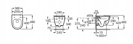 ROCA ONA Miska WC podwieszana Rimless Compacto z deską wolnoopadającą