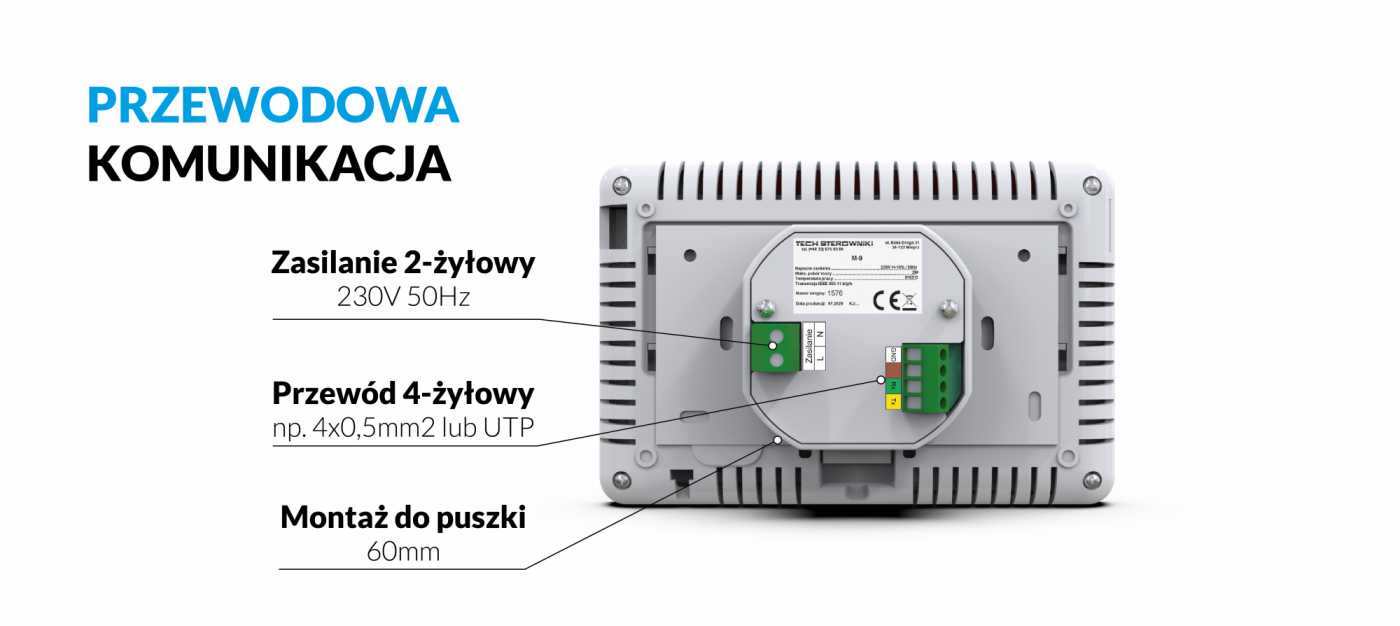 TECH M-9R CZARNY PRZEWODOWY PANEL KONTROLNY Z MODUŁEM WiFi (montaż podtynkowy)