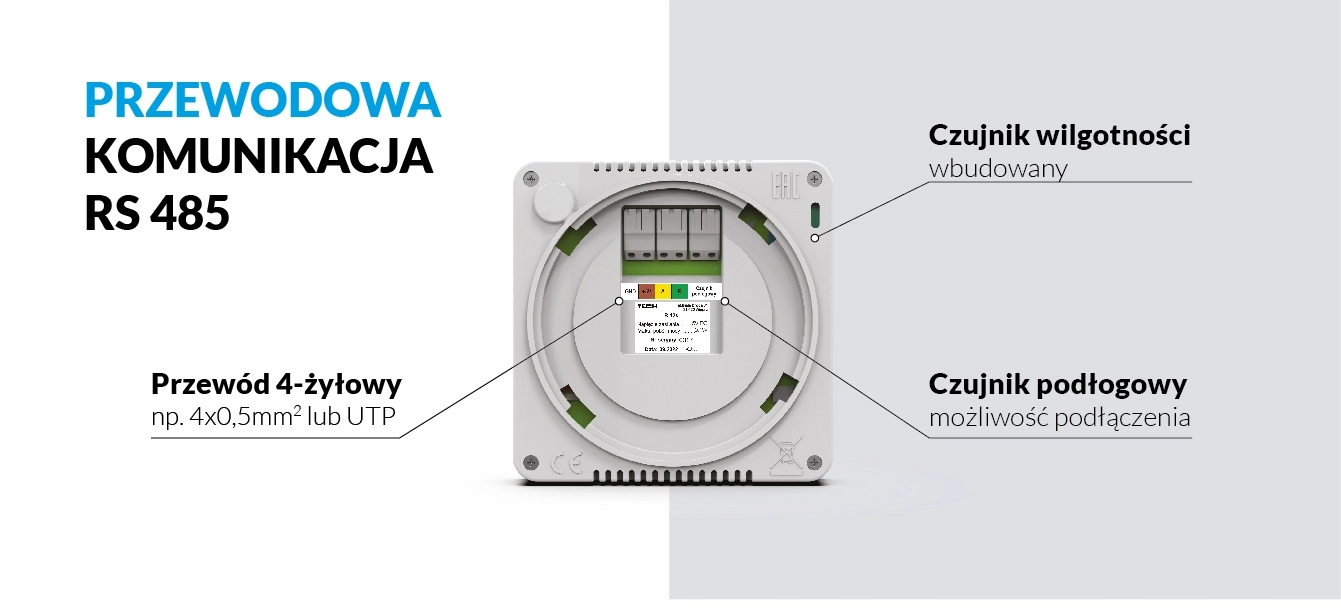 • przewodowa komunikacja 4-żyłowa RS 485 / brak baterii