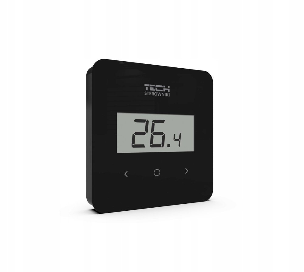 Bezprzewodowy regulator pokojowy z pomiarem wilgotności powietrza.
