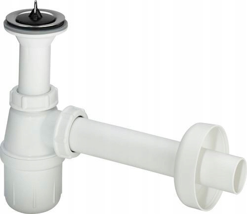 Wysokiej jakości syfon butelkowy przeznaczony do umywalek i bidetów. Posiada on gumowy korek, oraz rozetę maskującą na rurze odpływowej.