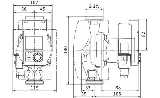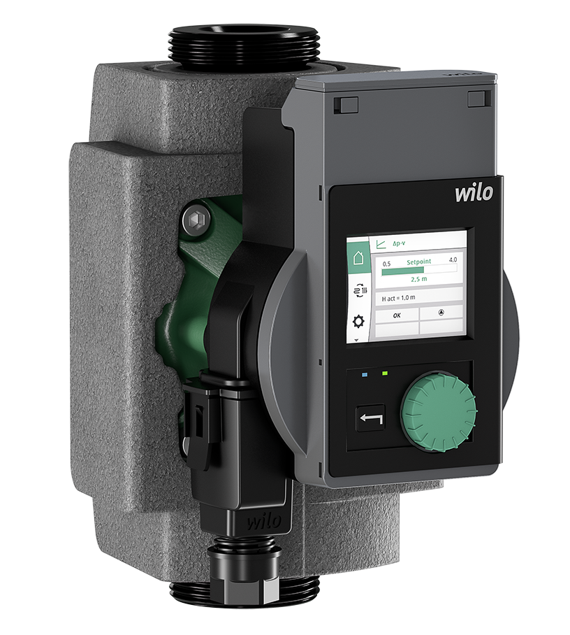 Bezdławnicowa pompą obiegową z przyłączem gwintowanym, silnikiem synchronicznym odpornym na prąd przy zablokowaniu, wykonanym w technologii ECM (oszczędność energii do 90% w porównaniu z pompą nieregulowaną) oraz z wbudowaną elektroniczną regulacją wydajności do bezstopniowej regulacji różnicy ciśnień.