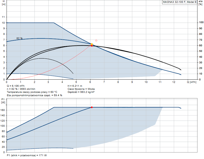• Obliczona wysokość podnoszenia pompy: 6.211 m