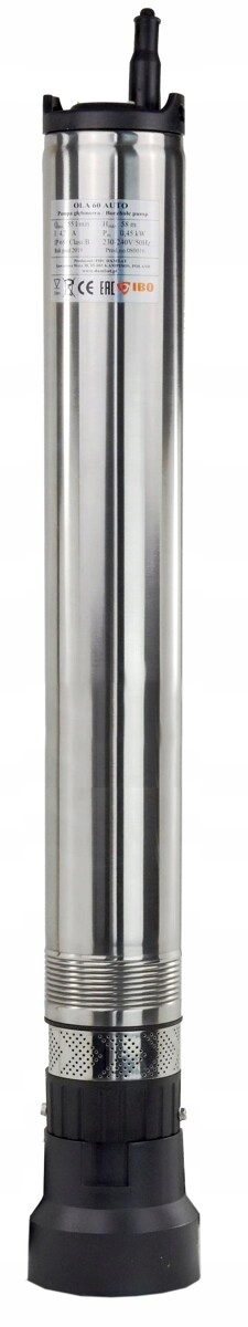 Pompa wykonana jest ze stali nierdzewnej, ma wirniki i dyfuzory z norylu. Taka konstrukcja jest gwarancją wieloletniej niezawodności oraz odporności na korozję. Pompa głębinowa IBO OLA 100 AUTO wyposażona jest w 20-metrowy przewód zasilający zakończony wtyczką, ma zabezpieczenie termiczne, chroniące przed przegrzaniem i pracą w zbyt wysokiej temperaturze. Do pompy pasują przyłącza o średnicy 1”. Pompa dodatkowo posiada płaszcz chłodzący silnik, dzięki czemu urządzenie nie musi mieć rury osłonowej. Pompa ma niewielką średnicę 98 mm, co pozwala zamontować ją w praktycznie każdej standardowej studni. Pompuje do 90 l/min, a maksymalna wysokość podnoszenia wody wynosi 50 metrów. Urządzenie posiada wbudowany zawór zwrotny, dzięki któremu woda nie wraca do ujęcia po wyłączeniu pompy.