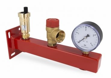 Grupa bezpieczeństwa kotla BSS, Nmax UDT 73,6 kW, z zaworem bezpieczeństwa MS 3 bar, z przyłączem do naczynia przeponowego z szybkozłączem