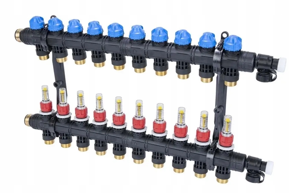 Rozprowadza ciepło / chłód ze źródła na poszczególne pętle instalacji płaszczyznowej.