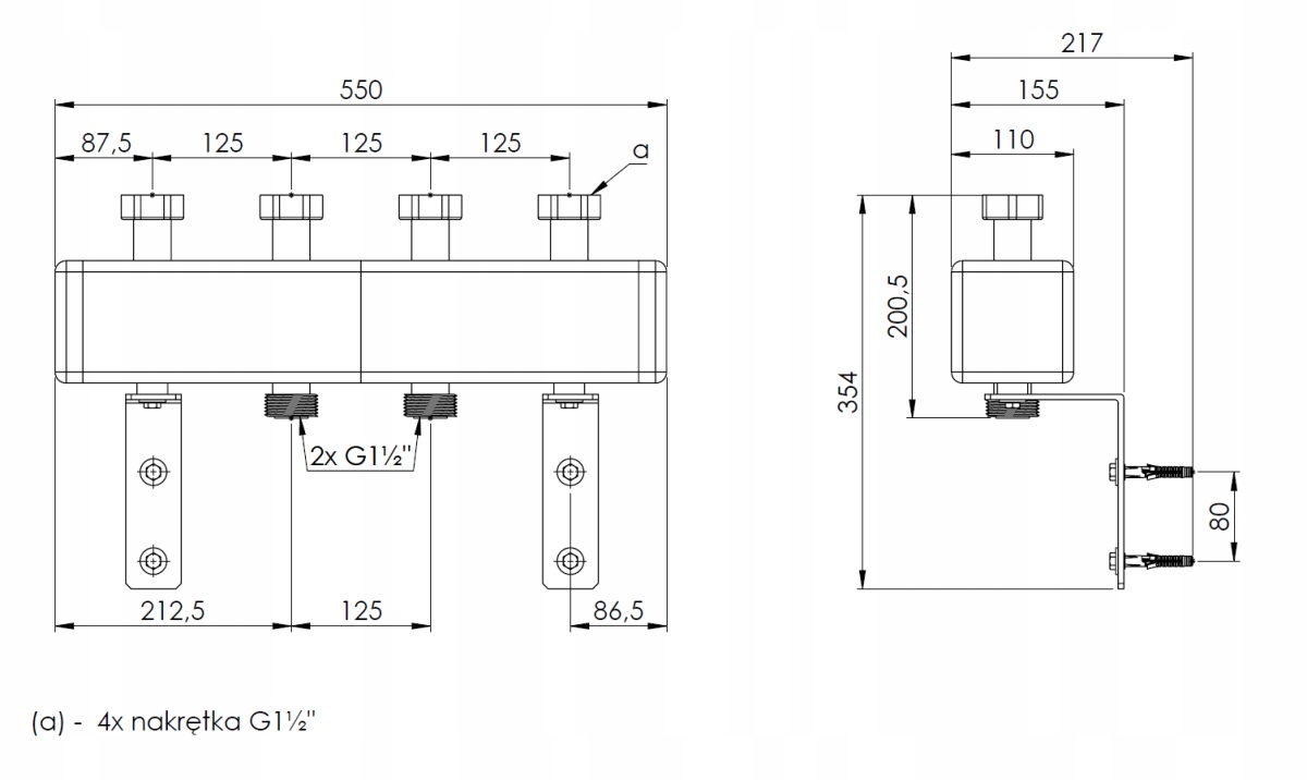 • Rozstaw przyłączy od strony instalacji