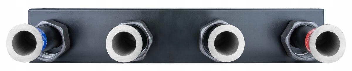 Dwie pary przyłączy zasilających i powrotnych obiegów pompowych.