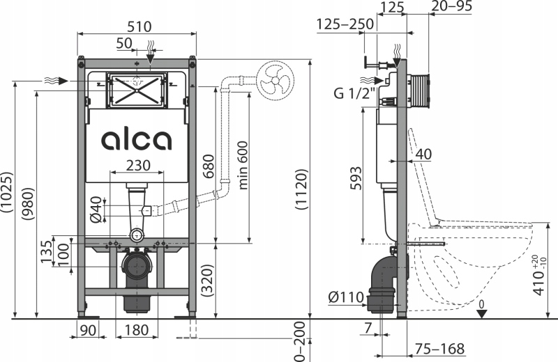 • Do zamontowania wiszącej miski WC o rozstawie śrub mocujących 180 mm lub  230 mm