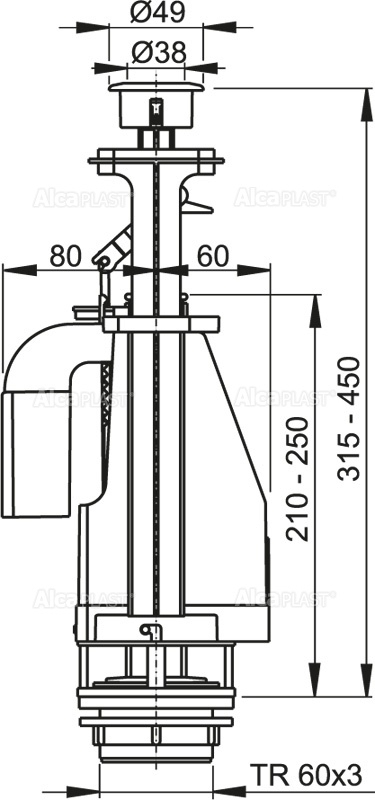 AlcaPLAST zawór spustowy do spłuczki z funkcją 3/6 litra A08A