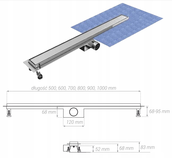 BLUE Odwodnienie liniowe stal nierdzewna szlifowana - ruszt odwracalny dł. 700 mm