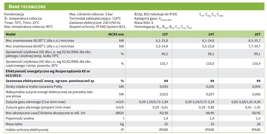 MCR3 evo 24T, gazowy, kondensacyjny, jednofunkcyjny z zaworem co/cwu, 6.1-24.8 kW