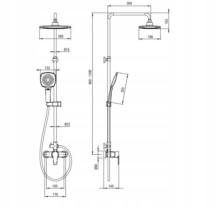 • Rodzaje strumienia: deszczowy, hydromasaż, mieszany