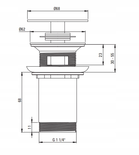 Korek do umywalki lub bidetu z tuleją - uniwersalny