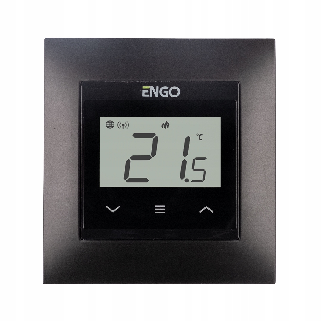 Podtynkowy regulator temperatury do montażu w ramce 55×55 mm. Przeznaczony do kontroli ogrzewania płaszczyznowego charakteryzującego się dużą bezwładnością cieplną. Może również sterować każdym innym typem ogrzewania, a także systemami chłodzącymi – zgodnie z potrzebami i ustawieniami użytkownika. Wbudowany moduł Wi-Fi umożliwia łatwą instalację i obsługę systemu grzewczego za pomocą aplikacji mobilnej ENGO Smart.