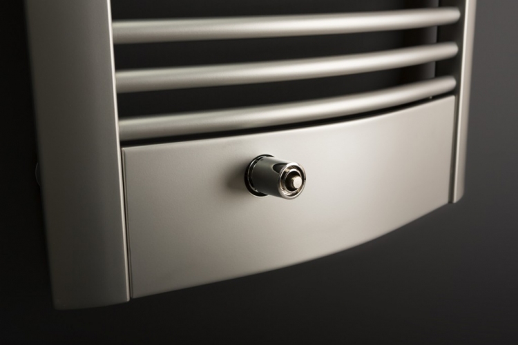 Uniknęliśmy nieestetycznych otworów w górnej powierzchni profilu pionowego, więc odpowietrznik ukryty jest na tylnej ściance, a przyłącza do instalacji c.o. ukryte są pod maskownicą aby widoczna była jedynie głowica termostatyczna. W grzejniku tym przyłącza znajdują się w środkowej, dolnej jego części w odległości 50 mm od siebie. Zawór zabudowany. Oczywiście dostępne są również otwory do zamontowania grzałki elektrycznej!