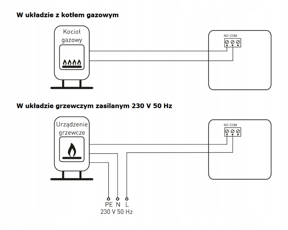 - wykorzystywany do sterowania pracą kotła, pompy c.o. lub innego urządzenia grzewczego,